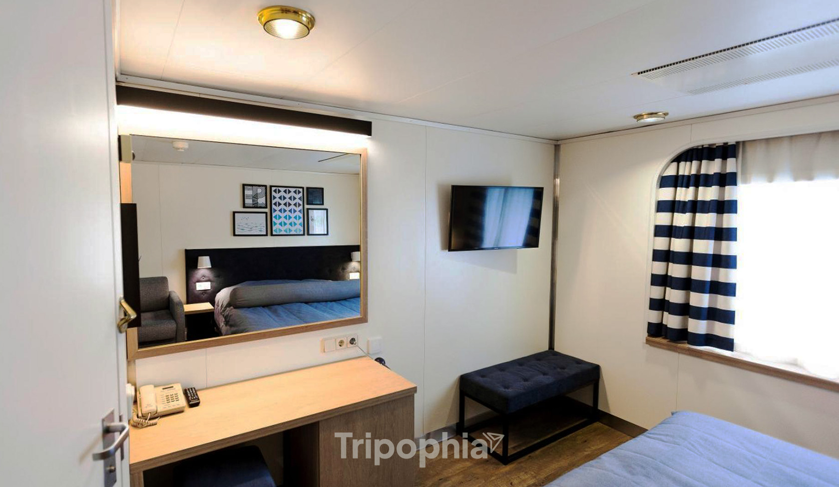 • 2024 Sea-View Cabin : The sea-view cabin is a high-class, 11 m2 cabin for up to 4 persons with air condition, TV, shower, WC and hairdryer. The lower beds can be converted into a double bed. Breakfast buffet on both mornings is included.