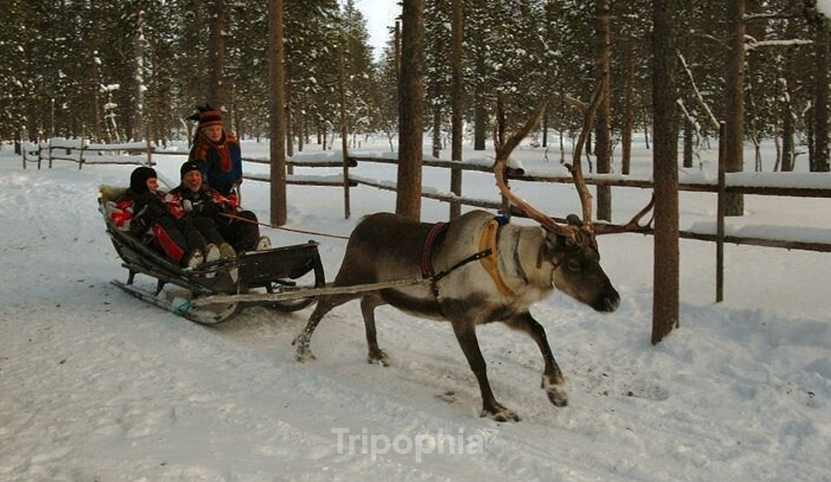 DESCRIPTION: Experience the serene beauty of a snowy forest on a reindeer-pulled sleigh ride. Relax as the reindeer pulls you through the quiet, magical forest, with the chance of seeing the Northern Lights. Enjoy a warm drink by the campfire, listen to the peaceful sounds of the forest and fire, and immerse yourself in the tranquil darkness of the North.